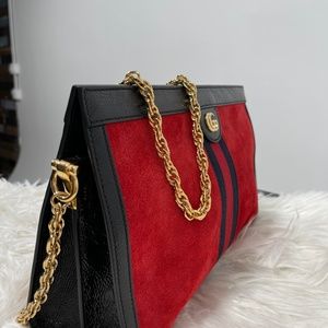 Gucci Ophidia Red Suede Chain Shoulder Bag