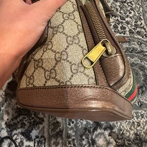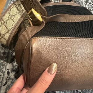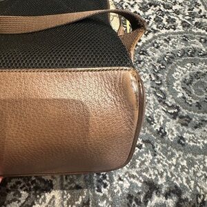 Coated canvas and web ophidia backpack. Slight exterior signs of wear at high friction areas. Some interior markings.