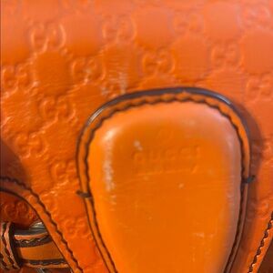 This vibrant orange Gucci crossbody bag is crafted from premium leather, featuring a structured rectangular shape with a stylish flap closure. The gold-toned chain strap and decorative tassel add a touch of elegance, making it a standout accessory for any occasion. She is preloved with minor signs of wear as shown in pics.