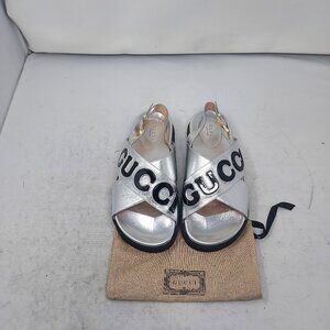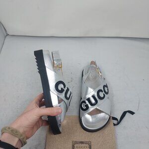 Gucci Ornella Silver Leather Logo Cross Sandal