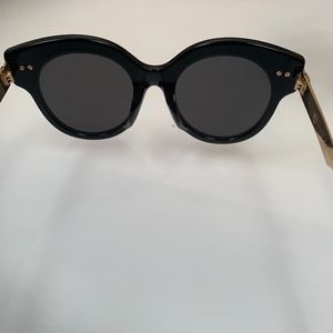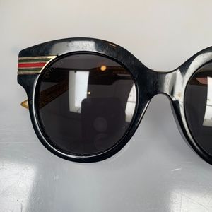 Super cute and stylish Gucci Sunglases. Sold out on all online and retail outlets. Minor scratches on frames and lenses but nothing that hinders vision. Still plenty of life in them. Comes with case and cloth. Included receipt to prove authenticity. Please look at photos closely to see scratches.