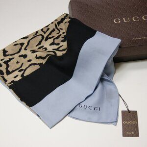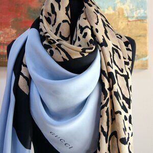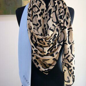 Authentic Gucci Scarf Leopard Animal Print Silk Shawl Oversize Wrap