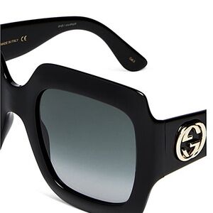 Gucci Oversized Square Sunglasses, 54mm. Original Price:$505 Gucci square sunglasses, recalling vintage inspiration. Lens/bridge/temple (in mm): 54-25-140. Optyl® plastic frames. Gradient square lenses; logo embossed at right. Interlocking GG temples. Chunky, tapered arms. 100% UVA/UVB protection. Can be fitted with prescription lenses. Made in Italy.