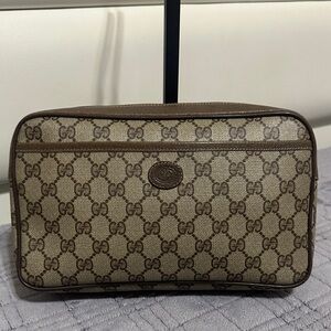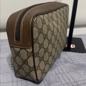 Elevate your style with this Gucci pvc pouch.Featuring a classic brown monogram design, it's perfect for any occasion.