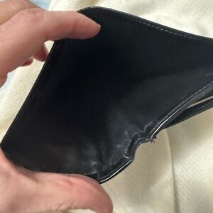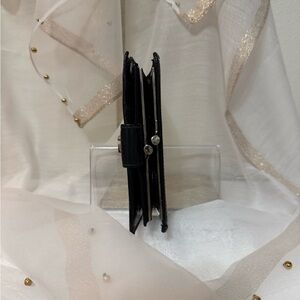 Sleek black wallet featuring a silver logo accent. Perfect for everyday use.in fantastic condition
