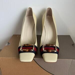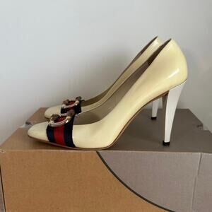 Gucci Patent Leather Bamboo Gold Buckle Women Heels- SZ 8.5