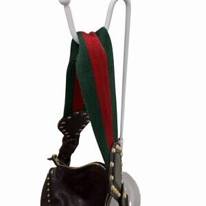 The Gucci Pelham Shoulder Bag in Dark Brown Guccissima Leather features the iconic embossed GG pattern enhanced with antique gold-tone studs. Braided leather handles and a relaxed silhouette bring a sophisticated, bohemian touch to any outfit.