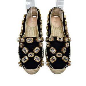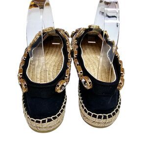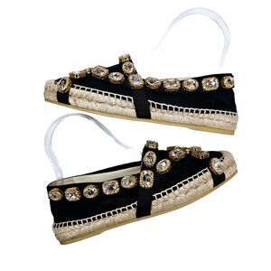 Keywords: Gucci espadrilles, Gucci Pepita, embellished espadrilles, Gucci size 37, designer shoes women, black Gucci shoes, crystal espadrilles, Gucci canvas shoes, luxury sandals, Gucci pre-owned, Gucci flat shoes, Gucci US 7.