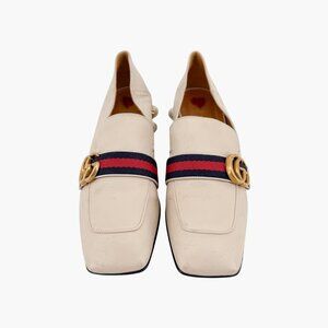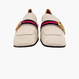 Gucci Peyton Pearl-Embellished GG Loafers Size 38 US 8 White Low Heel Slip On