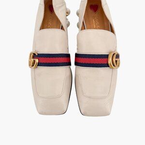 Gucci Peyton GG Pearl Embellished Loafers in White Leather