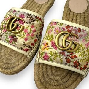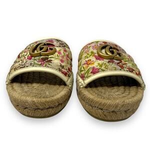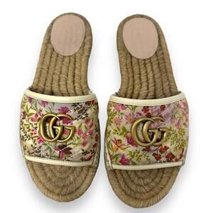 Gucci Pilar Floral GG Espadrille Slide Sandals Pink Cream 38 Women’s