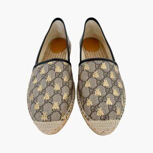 Gucci Pilar GG Bee Espadrille Flats EU 42 US 12 Beige Supreme Canvas Slip On