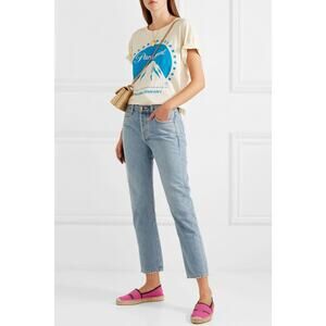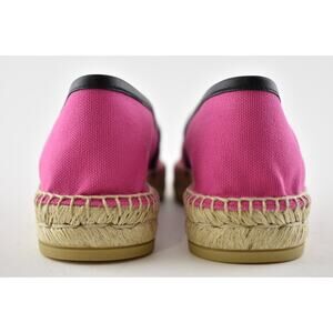 Gucci Pilar Pink Canvas Black Leather Trim GG Logo Print Flat Espadrilles 38.5