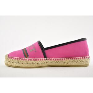 Gucci Pilar Pink Canvas Black Leather Trim GG Logo Print Flat Espadrilles 40