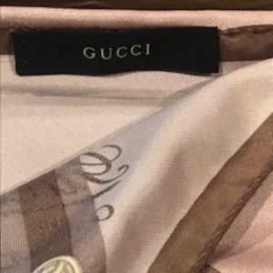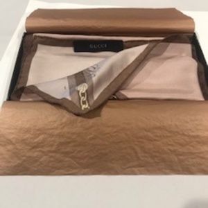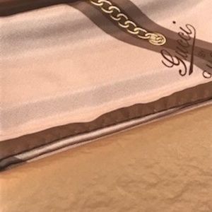 Gucci Pink Brown and Gold Chain Silk Scarf