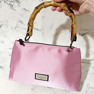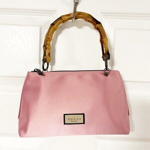 Gucci Pink Cosmetic Bag with Bamboo Handle