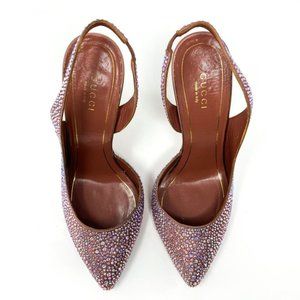 Elegant pink heels with sparkling embellishments. Sleek pointed toe design. Perfect for special occasions.