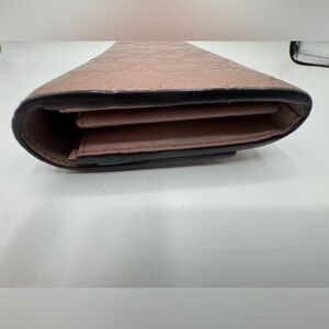 EUC, Authentic Gucci long wallet embossed with Gucci monogram, bow on tront snap closure with goldtone 'GG' hardware. Bow has minimal signs of color wear. Five full pockets, full zipper pocket, 12 card slots.