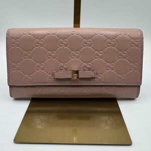 Gucci Pink Embossed Leather Long Wallet In Pristine Condition Rose Pink