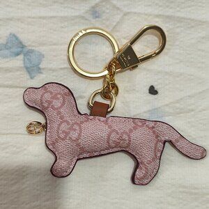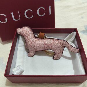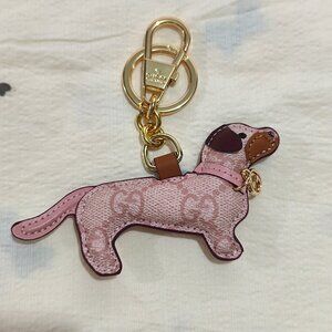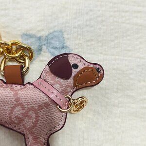 Gucci Pink Leather Dog Charm Keychain