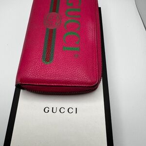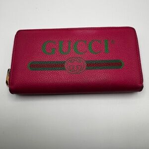 Gucci Pink Leather Long Continental Zip Around Wallet w/Logo Print 496317