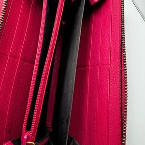 The Gucci Pink Leather Long Continental Zip Around Wallet is a luxurious and stylish accessory for women. Made in Italy from high-quality leather, this wallet features the iconic Gucci logo print and a zip-around closure for security. In a chic pink color, it is perfect for keeping your essentials organized in style. Ideal for those who appreciate fashion and functionality, this wallet is a statement piece that exudes sophistication and elegance.