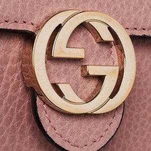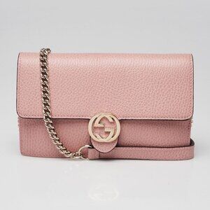 Gucci Pink Pebbled Leather Interlocking G Wallet on Chain Clutch Bag