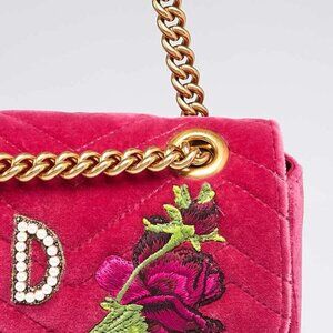 Gucci Pink Quilted Velvet Embroidered Blind for Love Medium Marmont Bag
