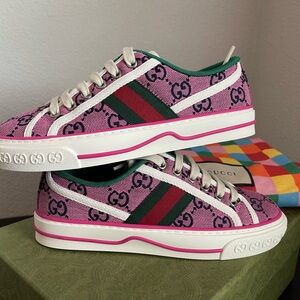 Gucci Pink and Green Sneakers Fashion-Forward Design- GG Supreme Canvas