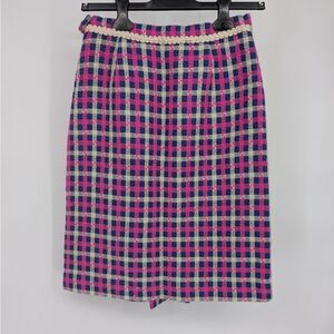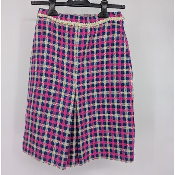 This knee-length skirt by Gucci combines a chic pencil style with pleated detailing, perfect for casual or work settings. The vibrant pink and blue colors add a touch of elegance to its classic design, making it a versatile addition to any wardrobe.