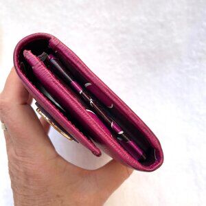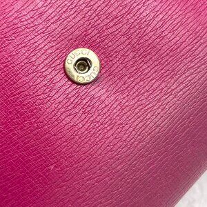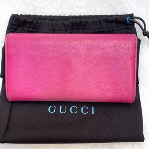 Authentic Gucci pink wallet in very good condition. Has minor wear. Inside is excellent condition. 12 slots for credit cards and a inside zippered pocket. 2 inside long slots for cash. One long slot in front of Wallet below flap. No dust bag. Please, inspect the pictures for condition, as a part of description! Ask questions! Smock and pets FREE home! Check out my other listings to bundle & save!