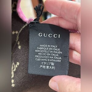 Gucci Pink and Brown Monogram Wool and Silk Blend Scarf