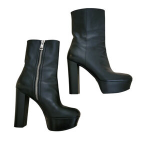 Gucci Platform Black Leather Mid-Calf Boots High Heel Square Toe 9 39