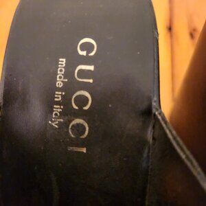 Very sexy Gucci black leather platform sandals. GORGEOUS black leather and sexy! lovingly taken care of, worn only occasionally. Comfortable despite the height because of the platform. These are vintage, classic never out of style. I have had these for 10 years, and still, they are in style. I hate to let these go, I cannot wear high heeled items anymore. They are as close to perfect as you can get-small scratch on side of platform, I show in photo. My price is firm, only because these need to go to the right person who sees the value. I paid 600 dollars for these 10 years ago! I loved these shoes, worn with a black pant, skinny jean, black jumpsuit, bell bottoms, versatile style. Be advised I wear a size 8 shoe, and these are 7.5- they run a tad larger than true 7.5. So, if you are a slightly narrow 8 you can wear these shoes. 4 inch heel with 1.5 inch platform.