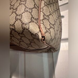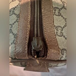 Vintage condition. Gucci Plus. Missing zipper puller. 2 exposed piping. Corner wears.