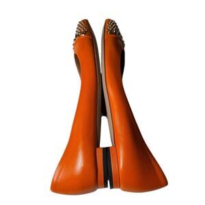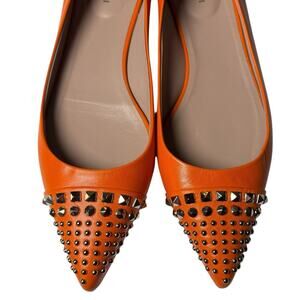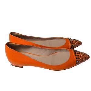 Gucci Pointed Toe Orange Leather Flats Silver Stud Toe Cap Slip On EU 37 US 7