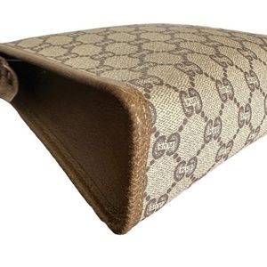 Beautiful Gucci Plus pouch in excellent pre loved condition. Shows very minimal signs of use. Interior is peeling and needs to be brushed. Corners shows minor signs of use.