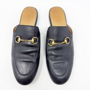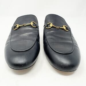 Gucci Princetown Black Leather Horsebit Mules Loafers 38