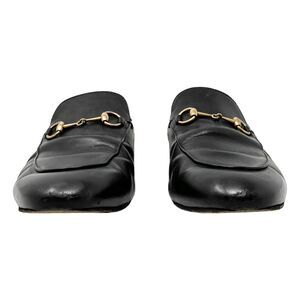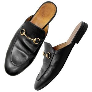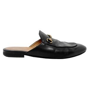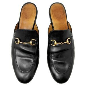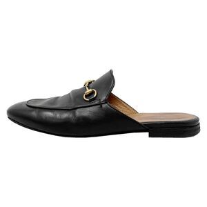 Elevate your fashion game with these sleek and stylish Gucci Princetown black leather round toe loafer mules slip ons flats. Crafted in Italy with high-quality leather, these shoes are a perfect combination of comfort and luxury. The slip-on design with standard shoe width and solid pattern make them an ideal choice for women who are always on the go.