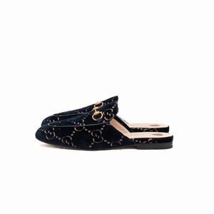 Gucci Princetown GG Monogram Blue Velvet Horsebit Mule Slides Navy 37 US7