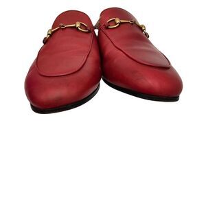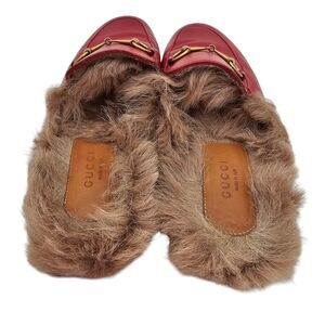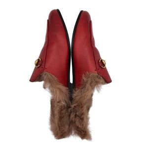 Gucci Princetown Horsebit Fur Lined Mule Flat Size 38 US 8 Red Leather Slip On