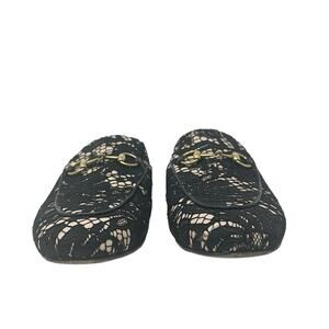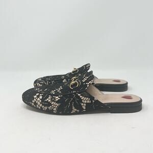 Gucci Princetown Horsebit Mules Leather Lace Overlay Black Tan Size 37