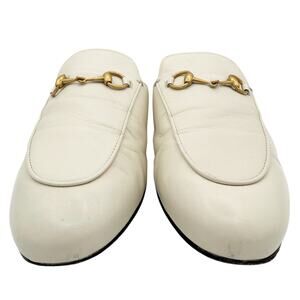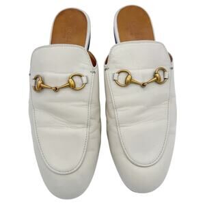 Gucci Princetown Horsebit Slip-On Loafer White Leather Flat Mules EU 39.5 US 9.5