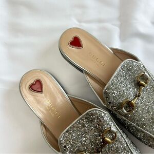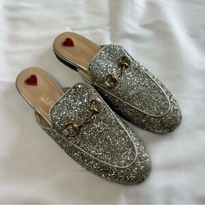 Gucci Princetown Horsebit-Detailed Glitter Leather Slippers size 37