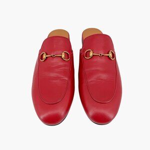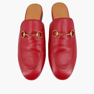 Gucci Princetown Red Leather Horsebit Loafer Mules Flat Shoes Size 39 US 9 Women