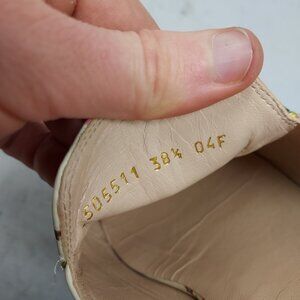 Please note signs of wear on bottom as shown. Please note faint mark on upper as shown that blends in with the pattern as shown