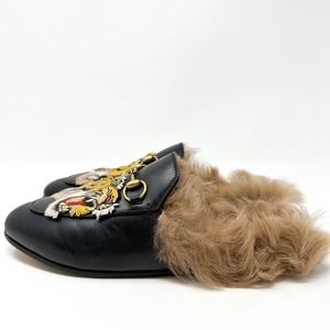 Gucci Princetown Tiger Fur Lined Round Toe Horsebit Canvas Flat Loafer Mules EU 37 US 7