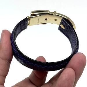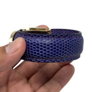 Gorgeous Cuff Bracelet made with Genuine Lizard Skin and finished in a beautiful purple color. Features Gold-Tone Metal details.