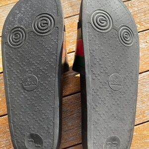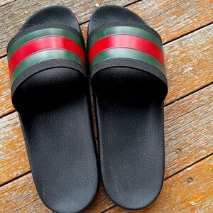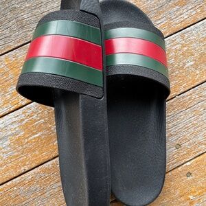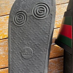 Step into style and comfort with these authentic Gucci Pursuit ’72 slides. A must-have for any wardrobe, these designer flip flops offer sleek luxury with Gucci’s renowned craftsmanship and attention to detail. Perfect for adding a touch of sophistication to your casual looks, these slides embody the timeless appeal of Gucci.