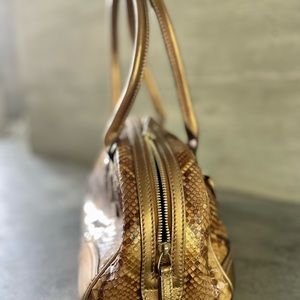 Never used Gucci metallic python bowler style purse with original dust bag and authentication card in pocket. Not one scale is damaged —- mint!
